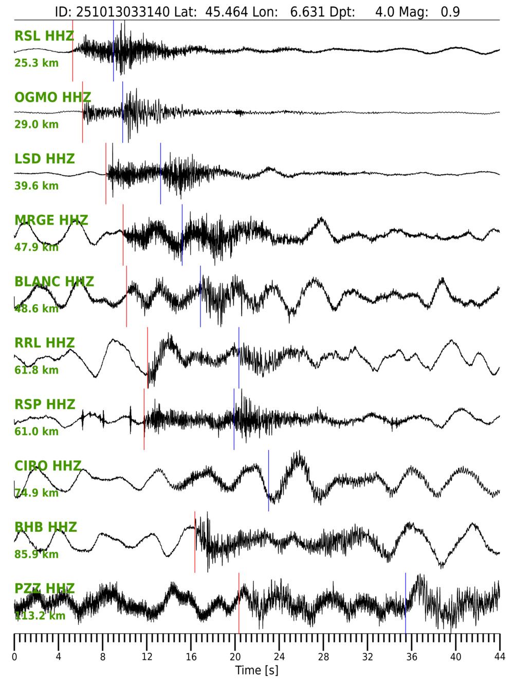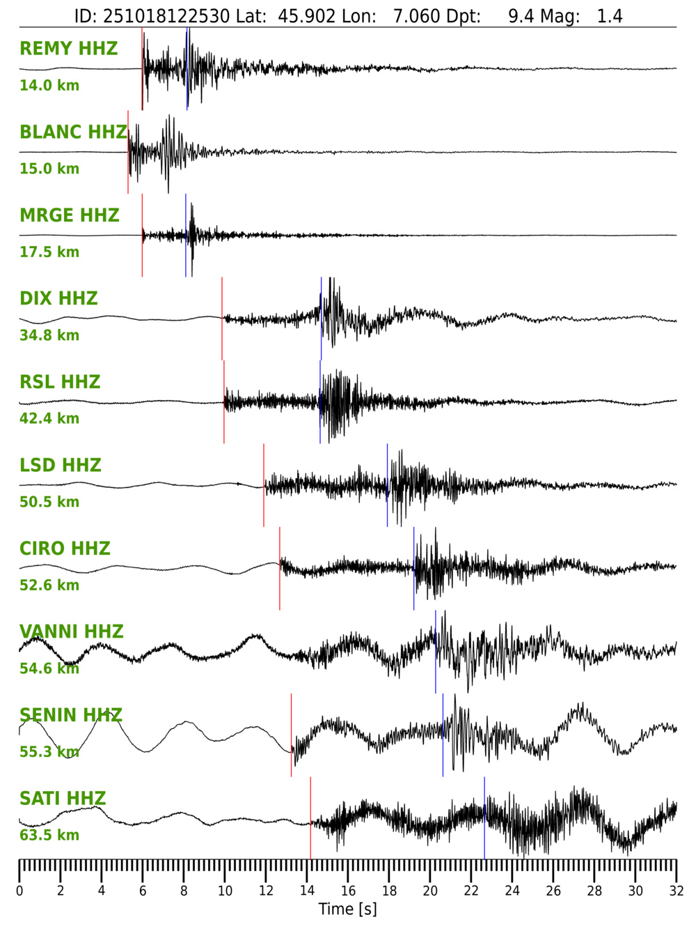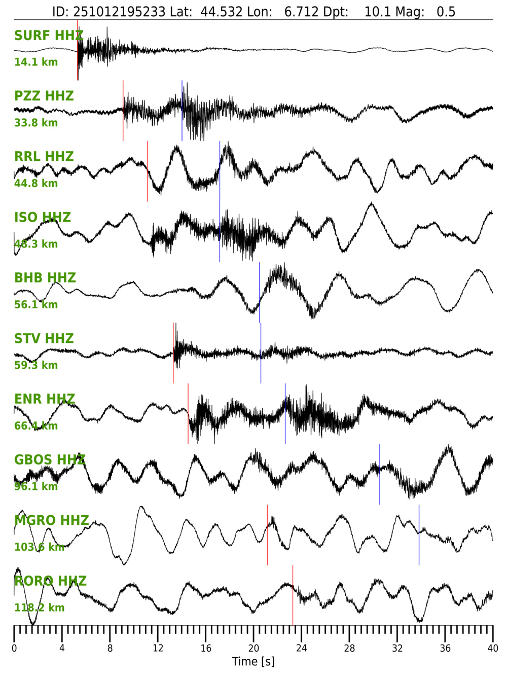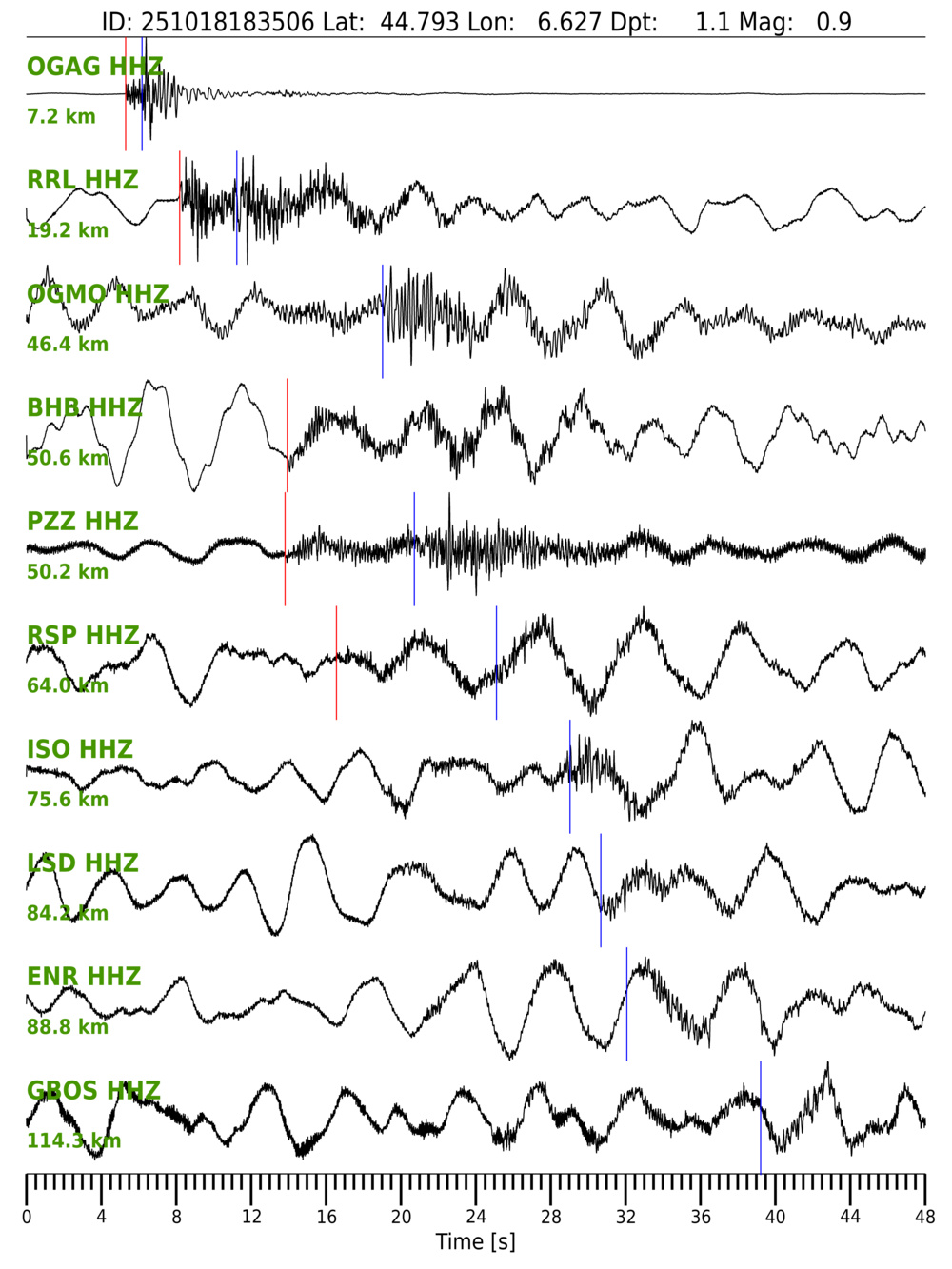 CURRENT SELECTION: FROM: 2025 October 12 - TO: 2025 October 19 ; LAT: 41.500 - 47.000 ; LON: 5.750 - 12.250 ; DEPTH: -5.0 - 200.0 ; MAG.: -1.0 - 10.0