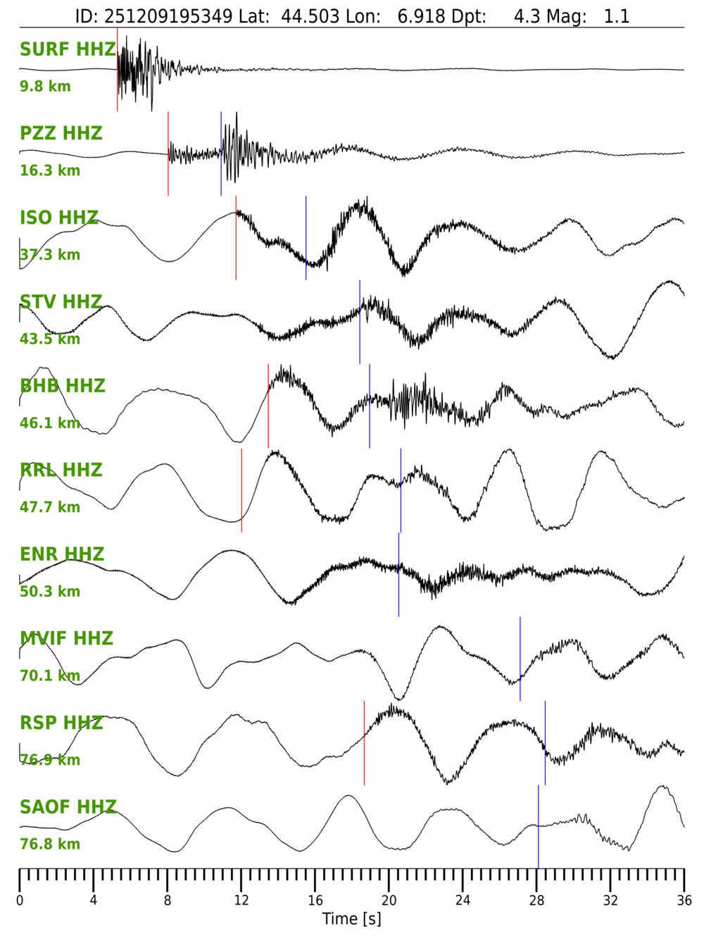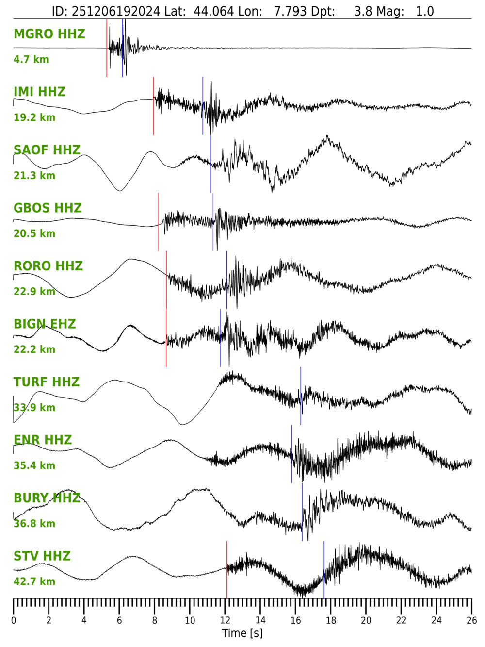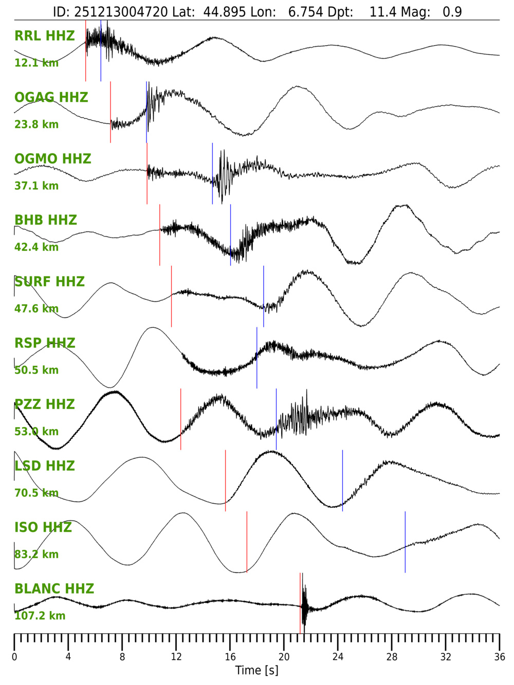 CURRENT SELECTION: FROM: 2025 December 06 - TO: 2025 December 13 ; LAT: 41.500 - 47.000 ; LON: 5.750 - 12.250 ; DEPTH: -5.0 - 200.0 ; MAG.: -1.0 - 10.0