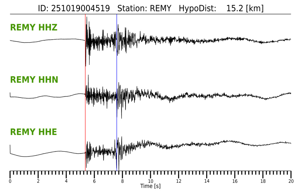 Erh: 1.8 km, Erz: 1.3 km, Nf: 19, Gap: 183°, Rms: 0.366 s