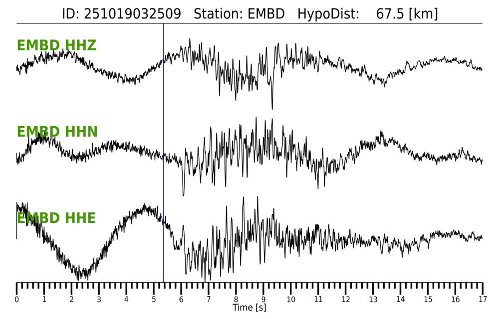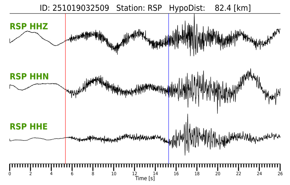 Erh: 2.3 km, Erz: 1.3 km, Nf: 33, Gap: 122°, Rms: 0.265 s