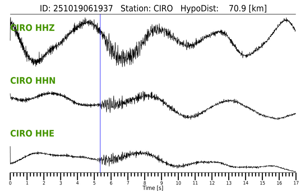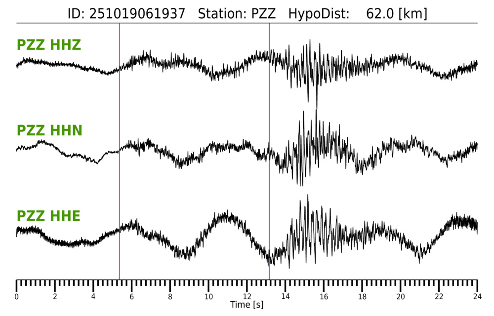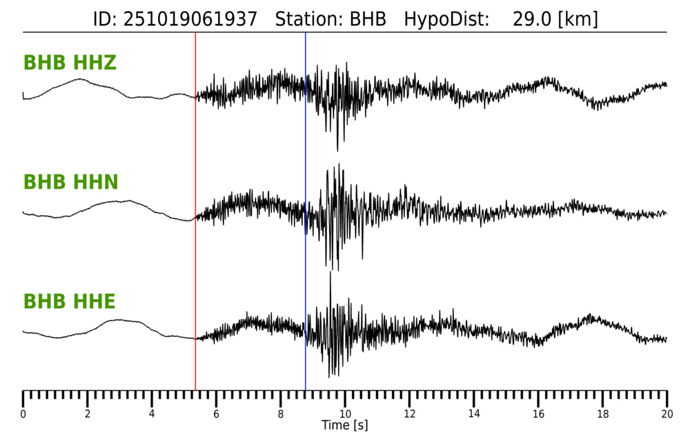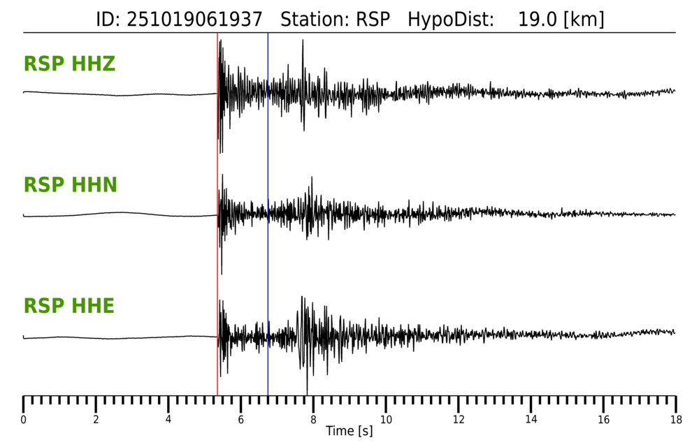 Erh: 1.4 km, Erz: 1.2 km, Nf: 13, Gap: 115°, Rms: 0.193 s
